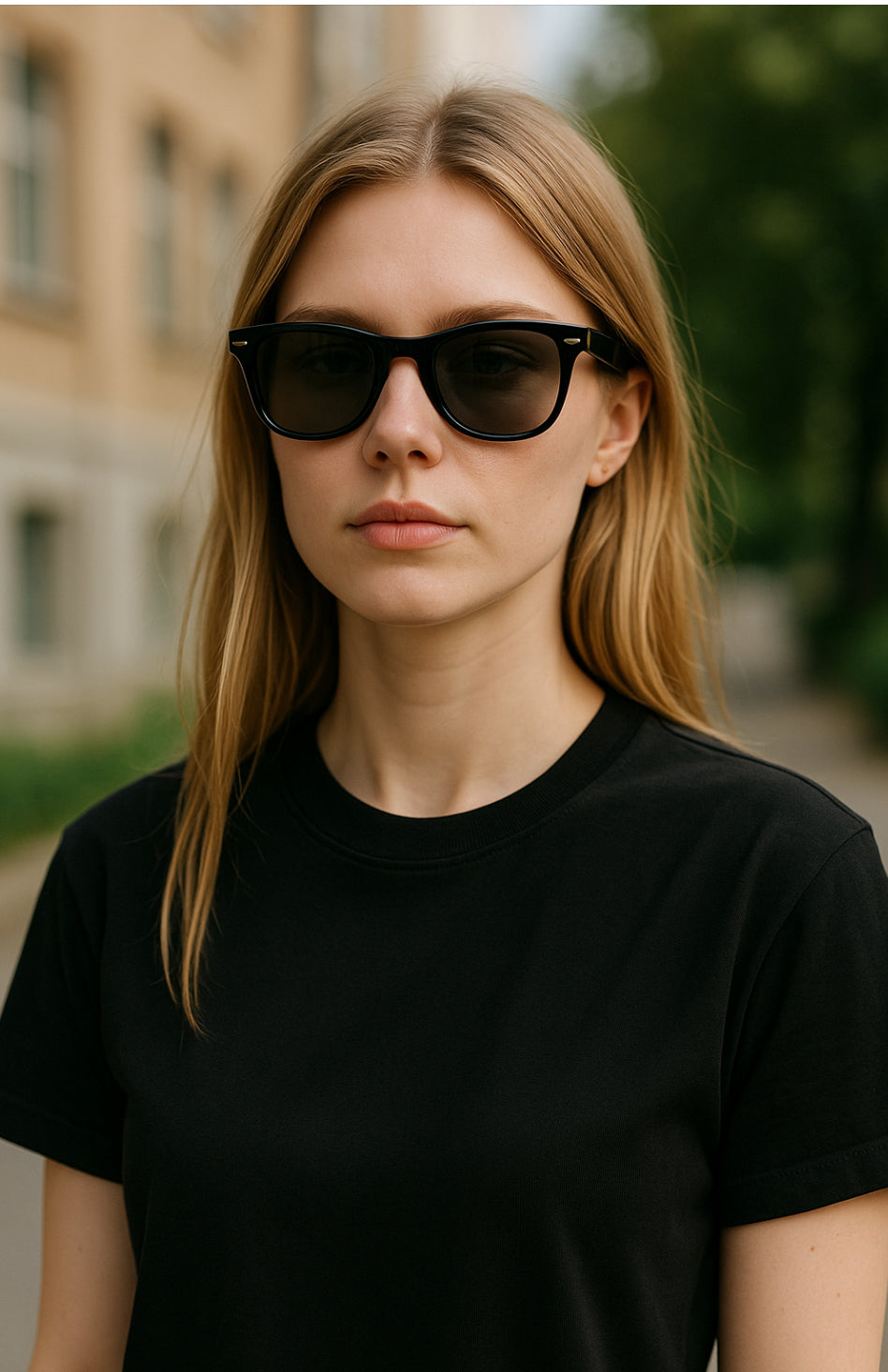 Dean sunglasses feature sharp, angular frames that exude a bold, timeless appeal. With a minimalist design in classic black, the lenses offer a deep, dark tint that adds a sense of cool sophistication. Perfect for anyone looking to make a statement with effortless, retro-inspired style.