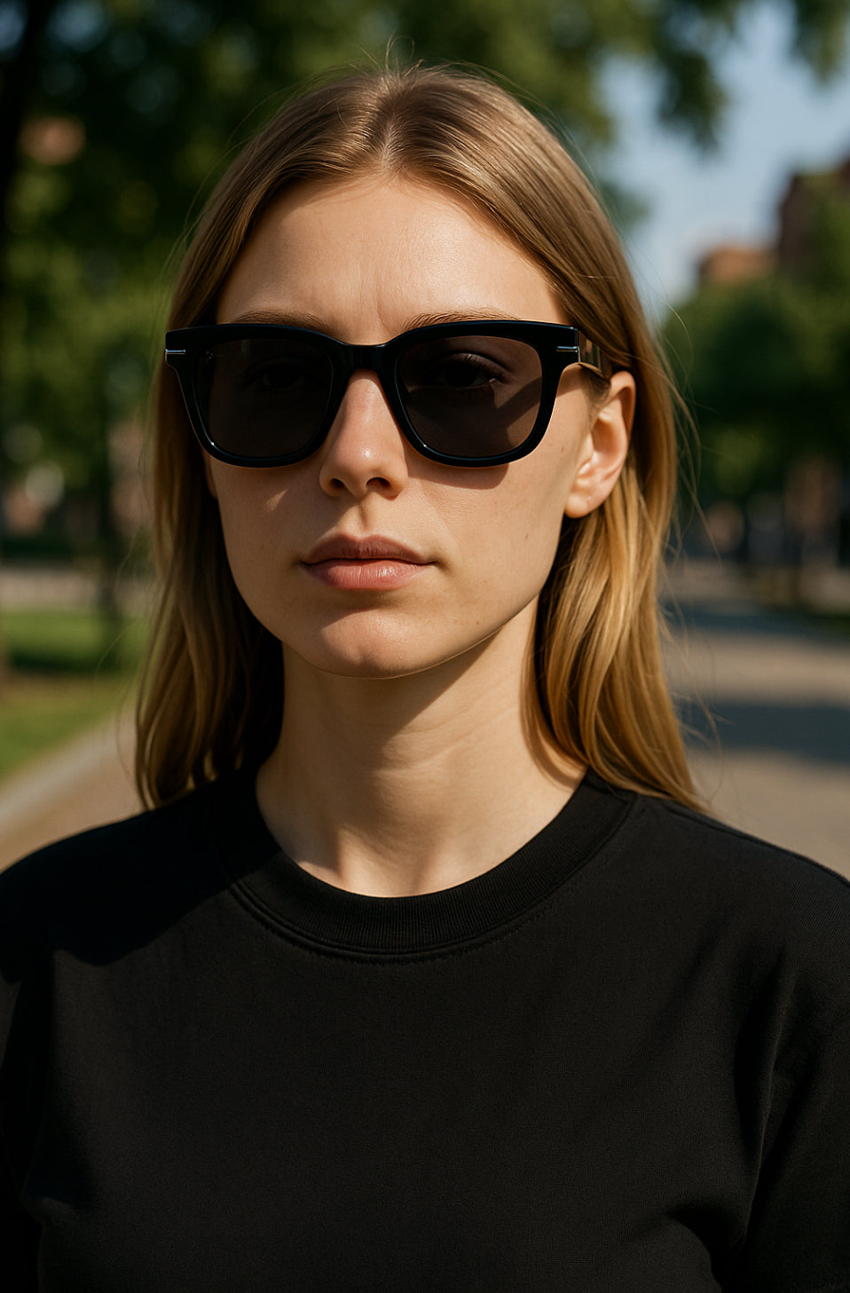 The Kurt sunglasses showcase a timeless, minimal rectangular D-shape frame, capturing a laid-back yet sophisticated style. The exposed silver-toned arrows details enhance the modern, polished finish.